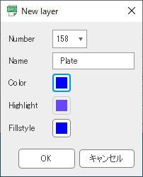 - brdファイルを開いて、適当な名前のレイヤーを作成する。色は